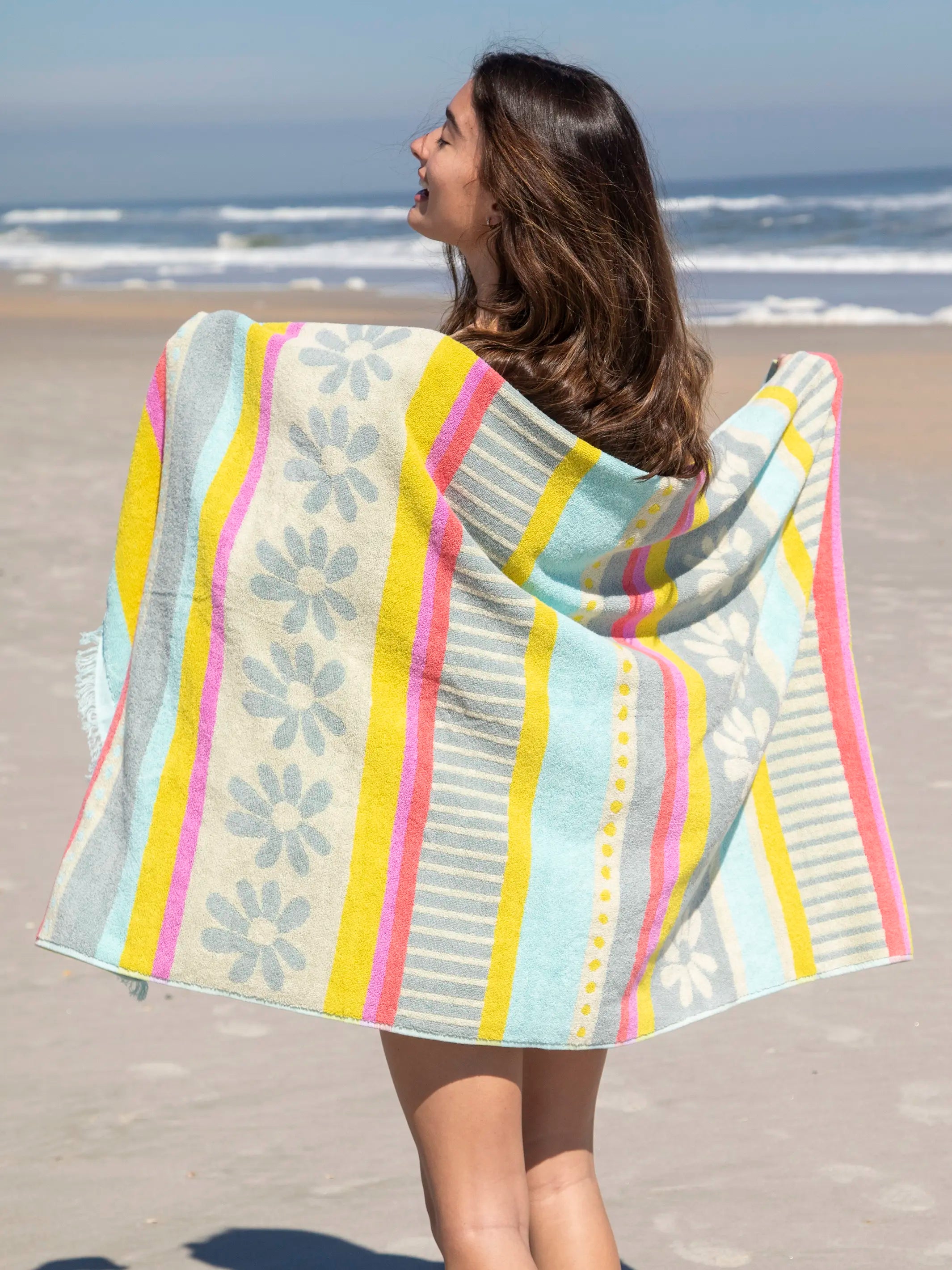 XL Water Resistant Picnic Blanket - Rainbow Floral Rows